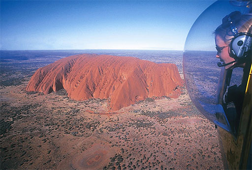 ヘリコプターで空からエアーズロックを眺めるツアー。