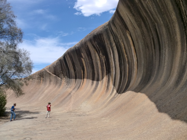 ピナクルズと並ぶ2大奇岩に数えられる高さ15mの波の形をした”ウエーブロック”をラグジュアリーバスで見に行くツアーです。パースから東に約1.5時間のどかな風景の中にバスを走らせると、西オーストラリア内陸最古の街ヨークに着きます。歴史ある建物の残る街は雰囲気があり人気です。途中、人々の為に尽くした牧羊犬の共同墓地に立ち寄りながら、ウエーブロックについたらピクニックランチで腹ごしらえ。花崗岩でできたウエーブロックは、大自然が20億年の時を掛けて作り出しました。正面からは登れませんが、回り道をしてウエーブロックの上に立つと、オーストラリアならではの風景があります。また、近くには”カバのあくび”と呼ばれるこれまた奇岩がございますのでお見逃しなく。帰りは先住民アボリジニの手形や壁画が見られる洞窟に寄りながらパースに向かいます。春の時期には車窓から自然に自生する花々”ワイルドフラワー”が咲き乱れる様を見る事ができます。
