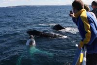 恒例のクジラウォッチングシーズンがやってきました。毎年大反響のクルーズの目玉は何と言っても、ウォッチングポイントまでの近さ。シドニー湾を出港してから、約1km先でクジラが観測できます。つまり、高速クルーザーで出港後、およそ10分後には、クジラが見れるということになります。このクジラの回遊するルートまでの近さは、それなりの大都市としては、世界一といわれているほどです。南極からやってくるクジラをシドニー沿岸で観測できるのは、毎年5月下旬~11月下旬頃までの季節限定。乗船するのは、最新のクジラウォッチング専用クルーザーでクジラを見つけるためのベストポジションをご提供いたします。波の抵抗を抑える機能を兼ね備えた最新型の船で快適なクルーズをお楽しみ頂けます。クジラの発見率は、かなりの高確率で、目撃するクジラは、ザトウクジラが主で、その他にミナミセミクジラやイルカなどが現れることもございます。