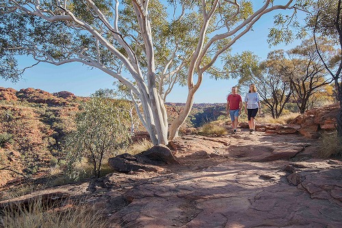 エアーズロックリゾートを出発し約3時間の移動の後、キングスクリークステーションにて朝食休憩をとります。引き続き、キングスキャニオンに向かいます(約30分)。英語ガイドの案内で、険しい道のりをキャニオンの崖の上まで登ると、ワタルカ国立公園の素晴らしい景観が目の前に広がります。このウォークは、3時間ほど要することがあるため、体力に自信のある方にお勧めします。それ以外の方は、峡谷の谷底に散らばる巨石の間を歩く手軽なウォークに参加することができます。ウォークの後は、近くのキングスキャニオンリゾートにて昼食をとります(自己負担)。その後、エアーズロックリゾートに戻ります。