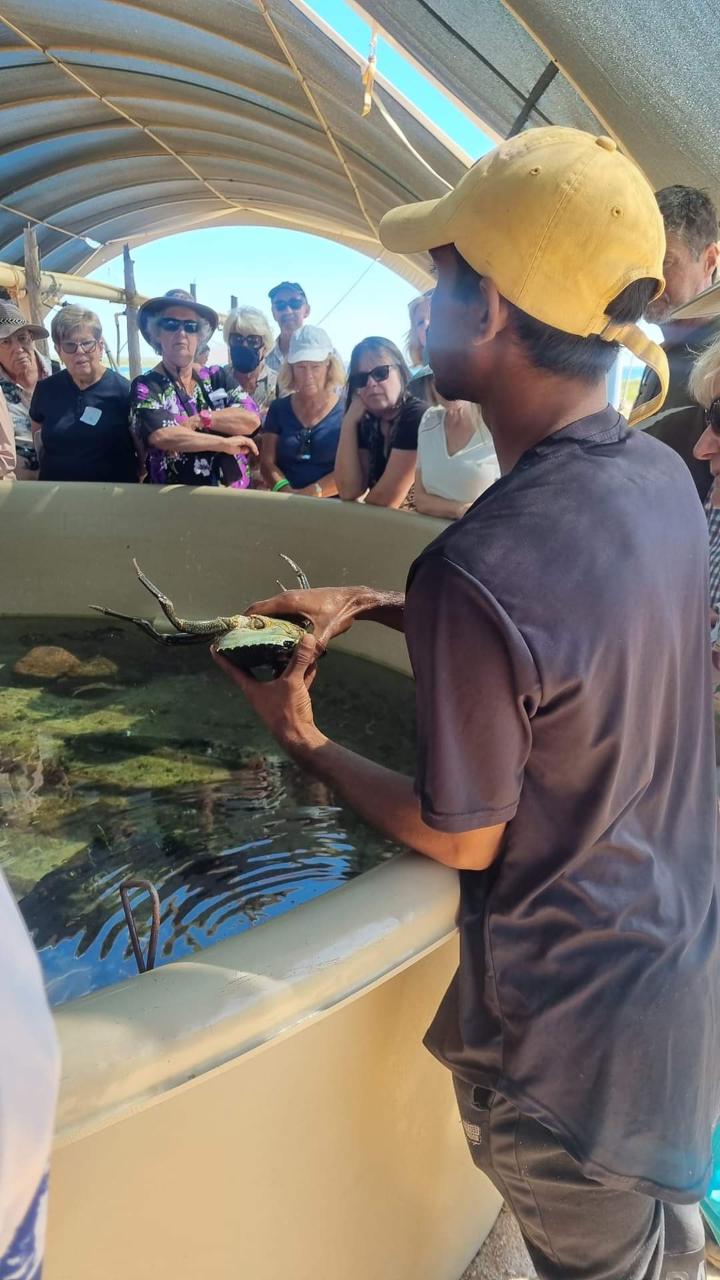 ランチの後、ワン・アーム・ポイント(アーディアルーン)へ向かいます。ワン・アーム・ポイントは、バッカニア諸島の素晴らしい景色を望む、人里離れた先住民コミュニティです。ここにはトロカス貝の孵化場があり、バーディ・ジャウィ族の豊かな文化や海にまつわる伝統との深い結びつきについて学ぶことができます。現地の芸術品や工芸品を購入する機会もあります(現金のみ)。