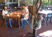 動物園園内のレストランでコアラと一緒に朝ごはん。