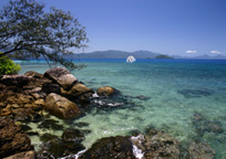フランクランド諸島はケアンズの南45kmの所に浮かぶ珊瑚礁に囲まれた無人島です。保護区域に指定されているので、1日最大100人しか上陸することができません。また島までは全長24mの豪華双胴船がマングローブの覆い茂るマルグレーブ川より出航します。30分程リバークルーズを楽しみ、その後海へ出て20分位で到着。6つの島のうち上陸するのは星砂のビーチでも有名なノーマンビー島。無人島独特な甘い香りが漂っており、誰もいない静けさを感じさせてくれます。島は亀の産卵地になっておりますので海亀も数多く生息しています。