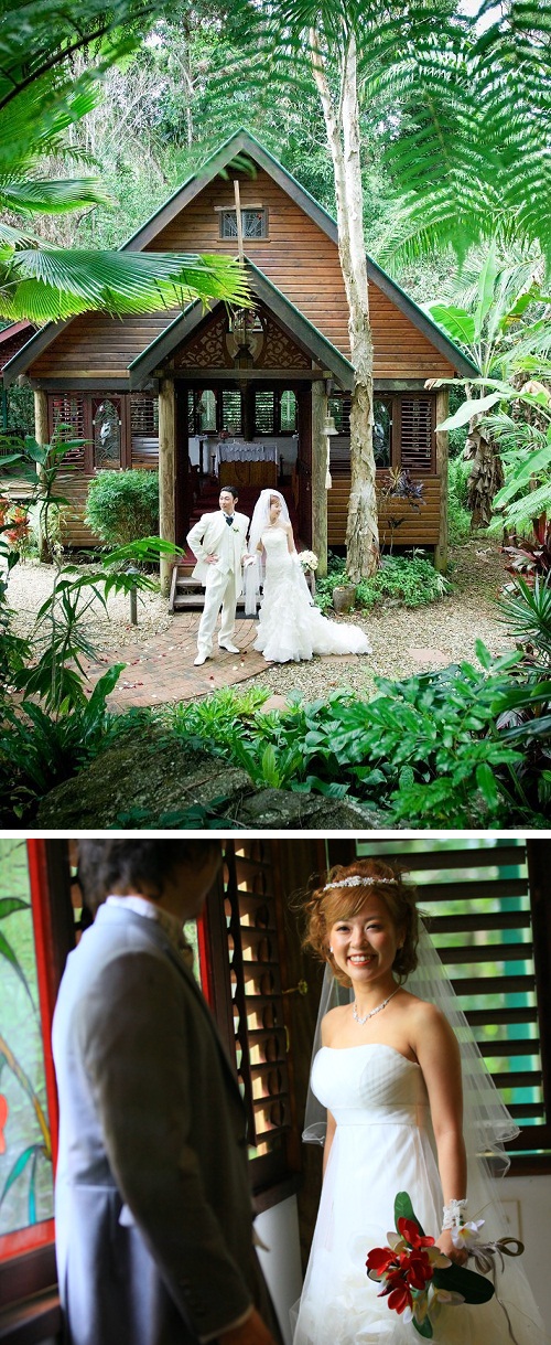 熱帯雨林に囲まれたステンドグラスのかわいいチャペルにて、愛を誓い合うお二人の姿をロマンティックにお写真に残します。