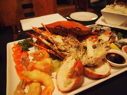 - 料金に含まれるもの シーフードプラター(ノースクィーンズランド産マッドクラブ1/4、西オーストラリア産ロブスター1/2、南オーストラリア産カキ、クィーンズランド産ブラックタイガーのフライ、タスマニア産スモークサーモン)、ディップソース、自家製サラダ、ジャスミンライス、季節のフルーツと自家製アイスクリームorシャーベット、コーヒーor紅茶