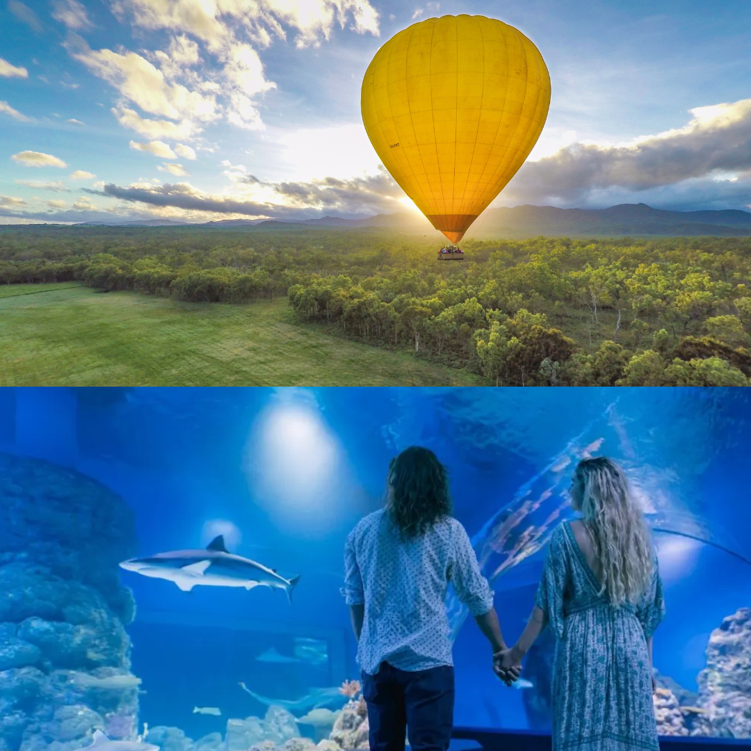 ケアンズ 熱気球遊覧飛行 (送迎付き+写真データプレゼント) + ケアンズ水族館