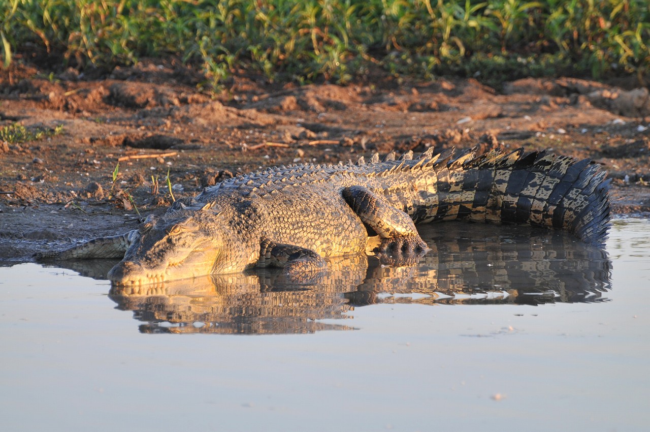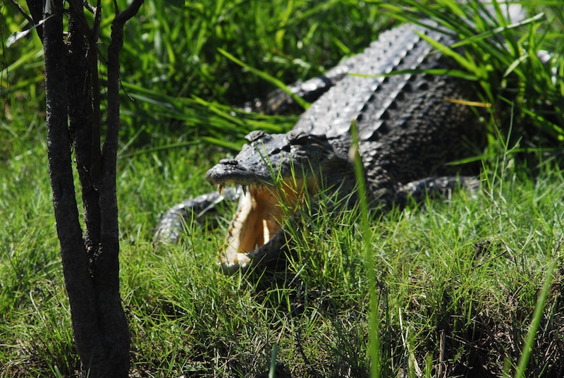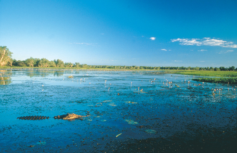 クーインダで昼食を取った後は、いよいよイエローウォーターのクルーズに乗船し、氾濫原に生息するイリエワニや野鳥、そして湿地帯の植物を観察します。