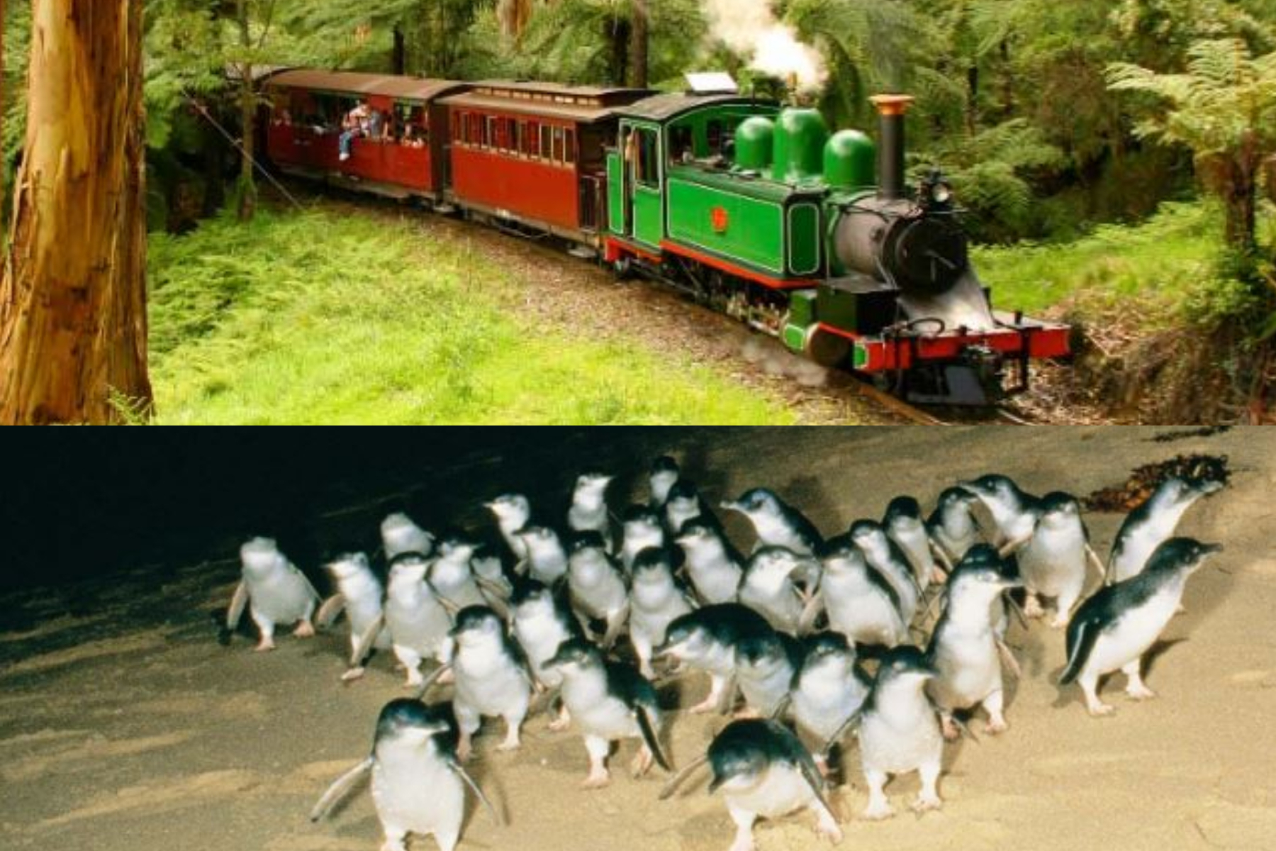 - パッフィンビリー蒸気機関車とペンギンパレードを1日で観光