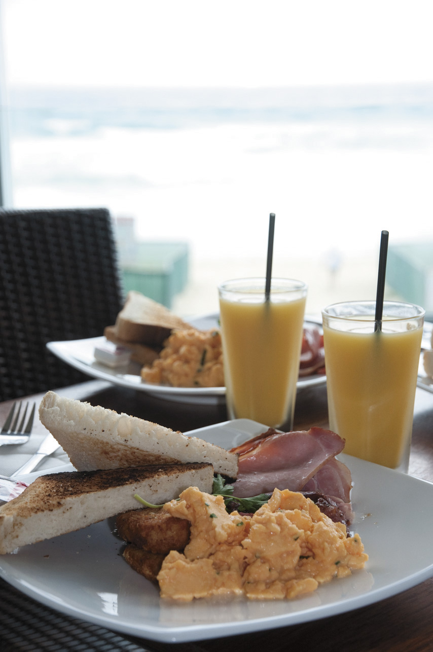 - ビーチクラブにて海岸線を眺めながらの朝食。