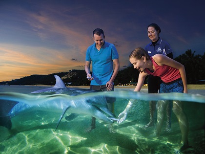 - 野生のイルカ餌付けからモートン島出港まで約1時間となっております。餌付け後は、速やかにVIPラウンジにお戻りVIPラウンジに戻りお着替えなど、19:00出港にそなえて準備をお願いいたします。