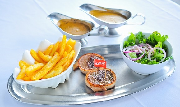 - 1ポンド(500g)ステーキ or オージーフィレステーキ or チキンカツレツ or 白身魚のソテーの4品から1つお選び下さい。