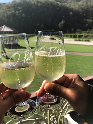 - ワイナリーに到着。伝統あるワイナリーでシャンパンで乾杯!と豪華な朝食を満喫。