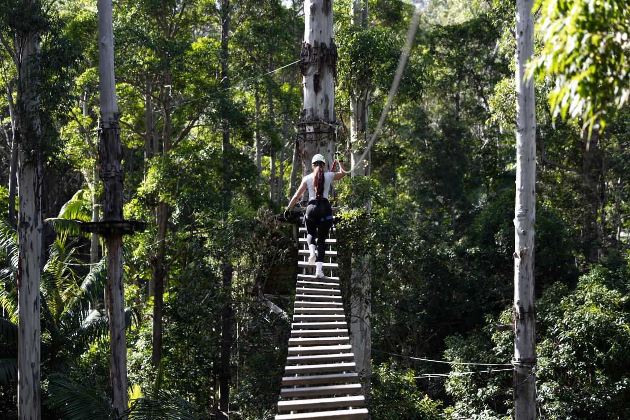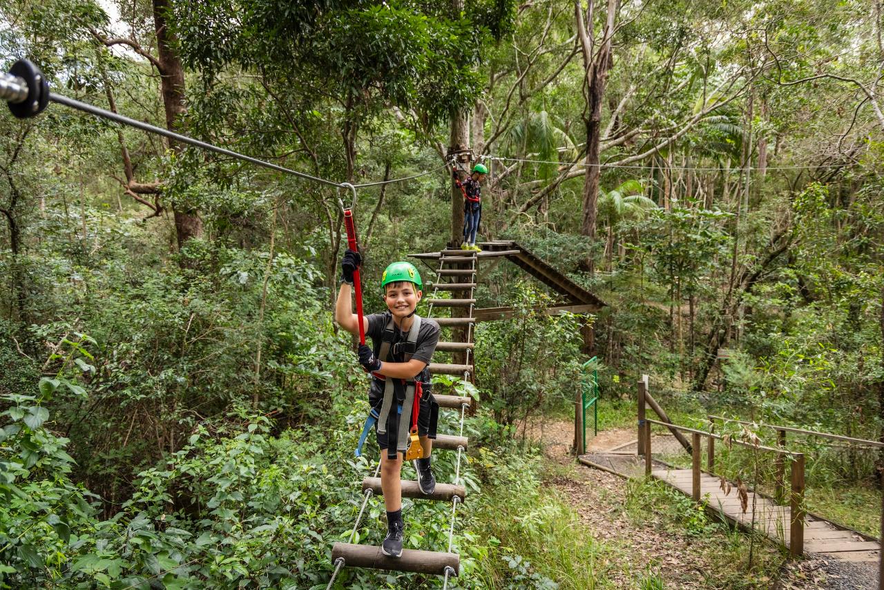 タンボリン・マウンテンの「ツリートップ・チャレンジ」は、150種類以上のツリートップ・アクティビティと13本のジップラインを備えた、オーストラリア最大級のハイロープ・アドベンチャーパークです!当アドベンチャーパークは、8歳以上のご家族全員で楽しめるよう設計されています。経験は不要で、体力レベルを問わずどなたでもお楽しみいただけます!