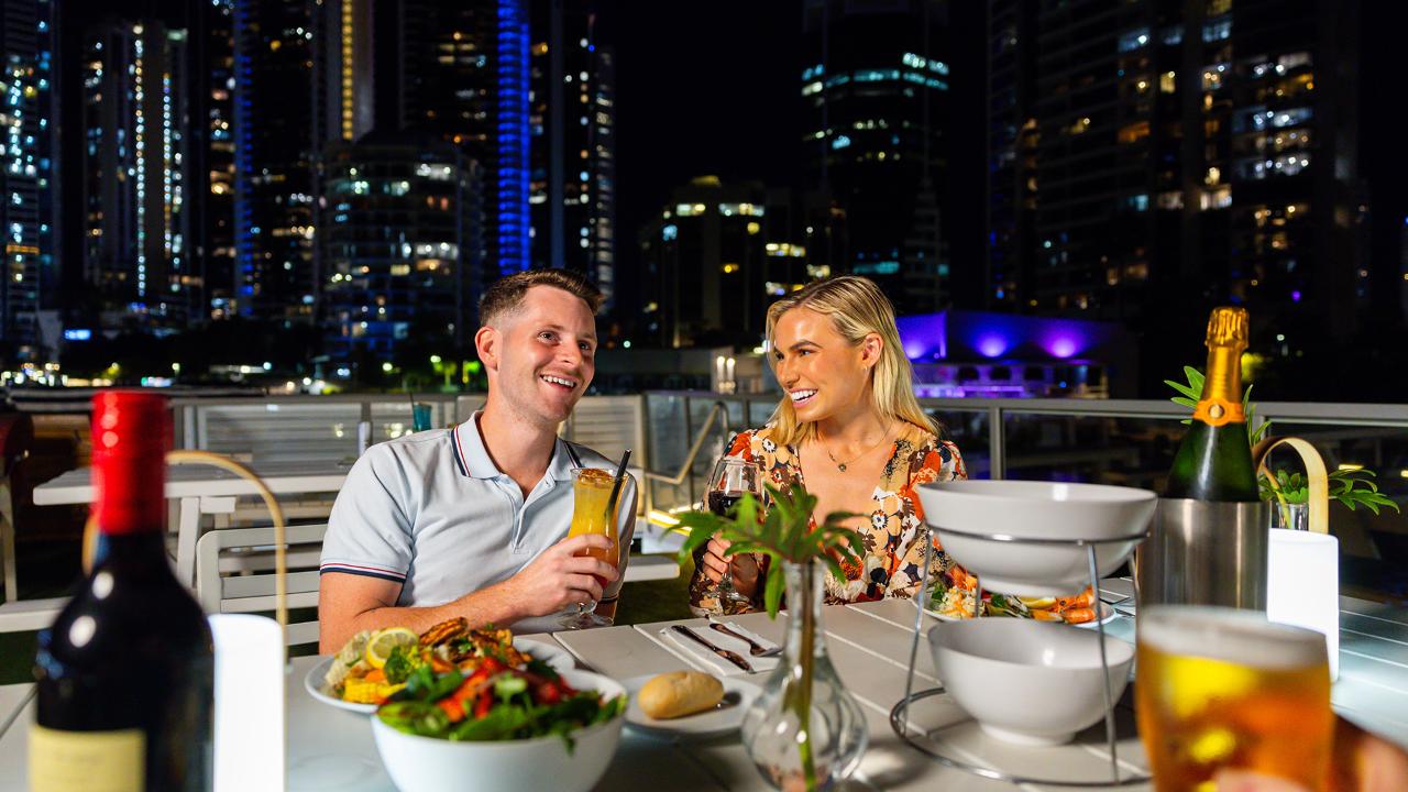 スピリット・オブ・エルストン号に乗り込み、このユニークで魅惑的なダイニング体験に浸りましょう。シーワールド・クルーズ・ターミナルを出発し、きらめくゴールドコーストの水路で観光と食事を楽しむ夕べをお過ごしください。 地元産の旬の食材をふんだんに使ったシェフ特製メニューを味わいながら、地元のクラフトビールやワイン、美味しいカクテルと完璧に調和したライブエンターテイメントをお楽しみください。上階の360度パノラマビューのオープンエアデッキへ移動し、息をのむような都市のスカイラインに感動してください。特別な記念日を祝うのに理想的なクルーズであり、単に忘れられない夜の外出を体験するためにも最適です。