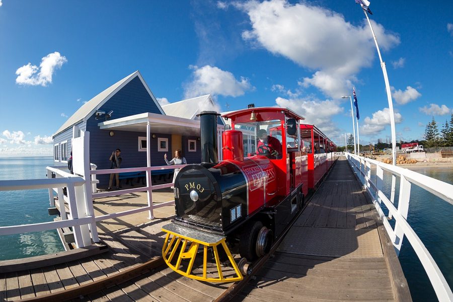 パースから南へ、途中放牧牛たちがのんびり過ごす農地を抜け、インド洋の沿岸の町を通り過ぎ、いよいよバッセルトンに到着します。ランチ休憩ののち桟橋へ。ここでは電車に乗車し、リラックスした1時間45分の澄んだインド洋を渡る1.7kmの旅に出発!途中の水中天文台では、約8メートルを下り海底の自然の驚異をお楽しみいただきます。