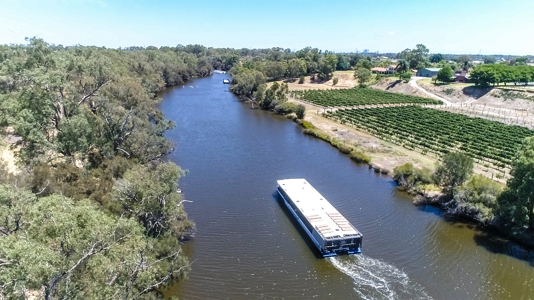 パースシティーにあるバラックストリート桟橋から乗船、スワンリバー上流にあるワインの名産地スワンバレーにある有名な"サンダルフォードエステート"を目指します。