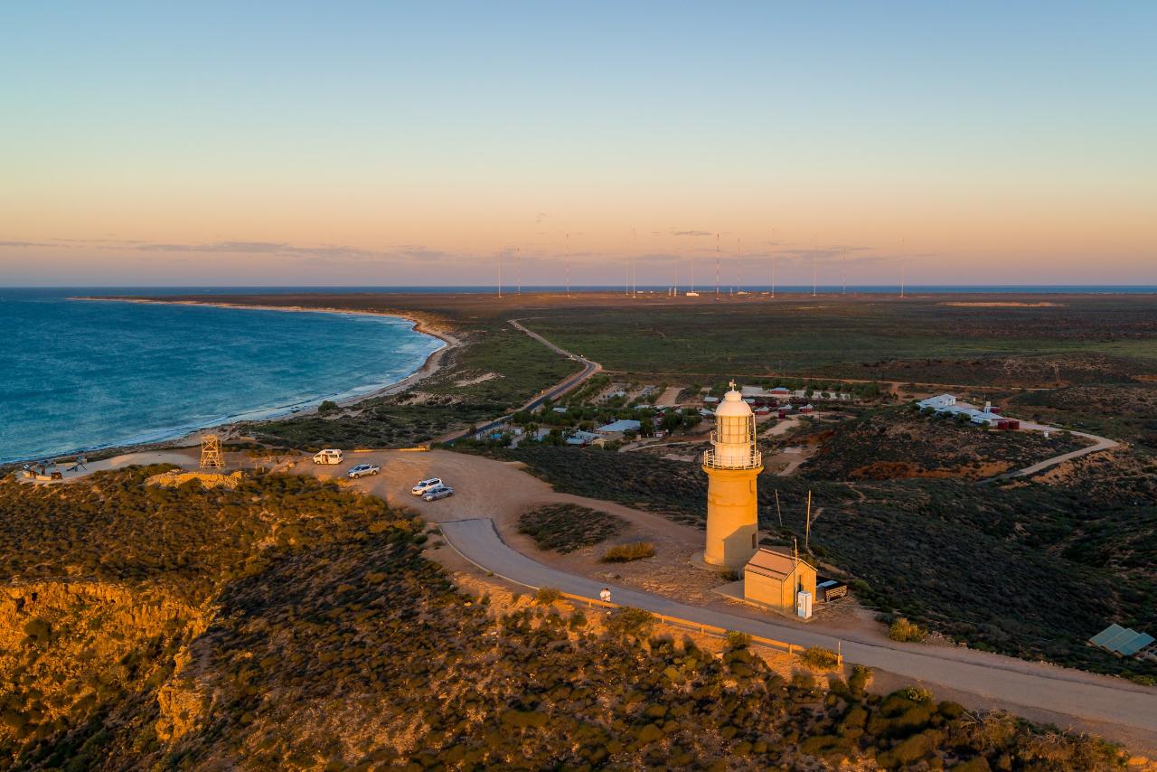 本日は、険しい石灰岩の山脈、息をのむような深い峡谷、そして50kmにわたる手つかずのビーチが広がる壮観なケープ・レンジ国立公園を車で横断します。ビーチでくつろぐか、見事なターコイズ・ベイでシュノーケリングを楽しむか、お好みで選んでください。午後早い時間にツアーを終え、昼食に間に合うようにします。 午後は自由時間です。宿泊施設から徒歩わずか500メートルのエクスマスの町を散策したり、宿泊施設のプールでくつろいだりしてください。あるいは、ジンベエザメやザトウクジラとのスイムツアーに参加し、ニンガルー・リーフで最も有名な訪問者たちと触れ合う一日を過ごすこともできます(費用は自己負担、季節限定)。日没時にはヴラミング・ヘッド灯台を訪れます。
