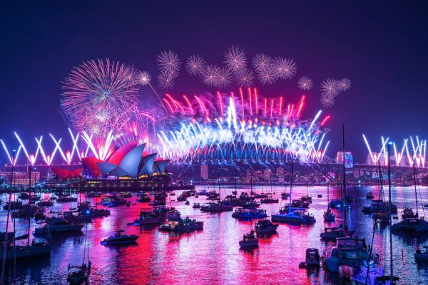 - カウントダウン&花火をシドニー湾から鑑賞。