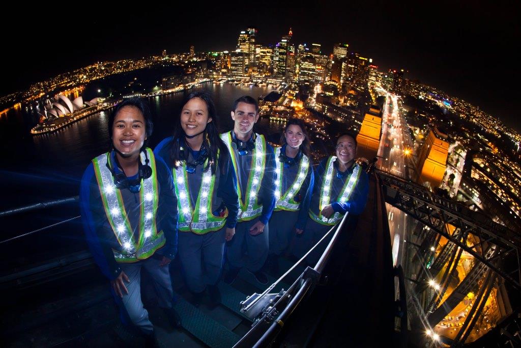 今年もこの季節がやってまいりました!南半球最大の光の祭典Vivid Sydney(ビビッドシドニー)。オペラハウス、サーキュラーキー、市内のビル群などに、大規模な電飾が施され、煌びやかに変身します。シドニーハーバーブリッジも鮮やかにライトアップされ、期間中はイベントを盛り上げます。こちらのイベントは、今年は5月23日から6月9日まで市内にて開催されます。期間中は、通常の夜のブリッジクライム(ナイトクライム)に参加することで、普段以上に光り輝くシドニーの夜景をご覧頂くことができます。そして、さらにイベントに光の装飾を施すために、ナイトクライムにご参加の皆様には、光るベストを着て頂き、クライムに参加していただきます。年に一回のイベント開催中に、ぜひご参加下さい。