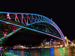 南半球最大の光の祭典Vivid Sydney期間中 シドニーハーバーブリッジ ナイトクライム