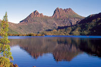古代杉等からなる2万年以上前の原生林を抜けて、ダブ湖のほとり、海抜1545メーターに佇む山がクレイドルです。深い色の湖の奥に2つの先端をもつ山の写真は、タスマニアを象徴する代表的な映像です。1922年から国立公園に指定され、現在は貴重な原生林と、そのただならぬ景色が認められ複合世界遺産としてユネスコに登録されています。長短20コース以上もある散策路は、むせかえるほどの原始の世界を感じる事が出来るという事で、世界中のトレッキングファンを魅了し続けています。