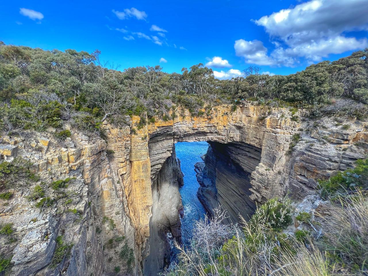 このツアーは対照的な魅力に満ちています。囚人たちの過酷な生活を描いた心に響く物語と、タスマン半島の息をのむような絶景が融合しています。情熱的で知識豊富なタスマニア出身のドライバーガイドが、バスツアー中に地元の農業や野生生物、その他の見どころについて独自の洞察や情報を交えてご案内し、一日を通して皆様をサポートいたします。ホバートを出発し、タスマン橋を渡って、受賞歴のあるワイン産地であるコール・リバー・バレーへと進み、歴史ある町リッチモンドへ向かいます。ここでは、囚人によって建設された有名なリッチモンド橋で、短い写真撮影の休憩をとります。その後、息をのむようなタスマン半島へと向かいます。この地域は、自然の美しさと素晴らしい海岸の景色に溢れています。 パイレーツ・ベイ・ルックアウトからの素晴らしい眺めに感動し、悪名高いイーグルホーク・ネックの「ドッグ・ライン」の実物大ブロンズレプリカをご覧ください。ポート・アーサーに到着後、事前手配済みの入場券で、インタラクティブな展示が楽しめる解説センターを訪れ、囚人たちの過酷な生活跡をたどります。無料のガイドツアーに参加した後、30棟以上の修復された建物や遺跡が点在する見事な英国式庭園を散策してください。 刑務所、かつての穀物倉庫や製粉所、隔離刑務所、司令官邸、教会などの見どころをご覧ください。昼食を購入するか、ご持参のピクニックランチを楽しみながら、美しく整備された敷地内で静かなひとときを過ごせます。カーナーヴォン湾でのクルーズでリラックスし、デッド島(死者の島)を周遊した後、上陸して1時間のガイド付きウォーキングツアーをお楽しみください。 ドライバーに、無料のオプションツアー「リマーカブル・ケーブズとメイニョン・ベイ展望台ツアー」についてお尋ねください。ホバートに戻る途中、タスマニアン・チョコレート・ファウンドリーに少し立ち寄ります。手作りのチョコレートギフトを眺めながら、五感が刺激される体験をお楽しみください。最高級のベルギー産クーベルチュールチョコレートを使用しており、どなたにもお楽しみいただける品が揃っています。 ショールームからは、チョコレートの製造工程を見学することも可能です!各スポットでの滞在時間を最大限に確保し、さらに様々な特典も盛り込まれた、このお得なツアーでは、見どころが満載です。